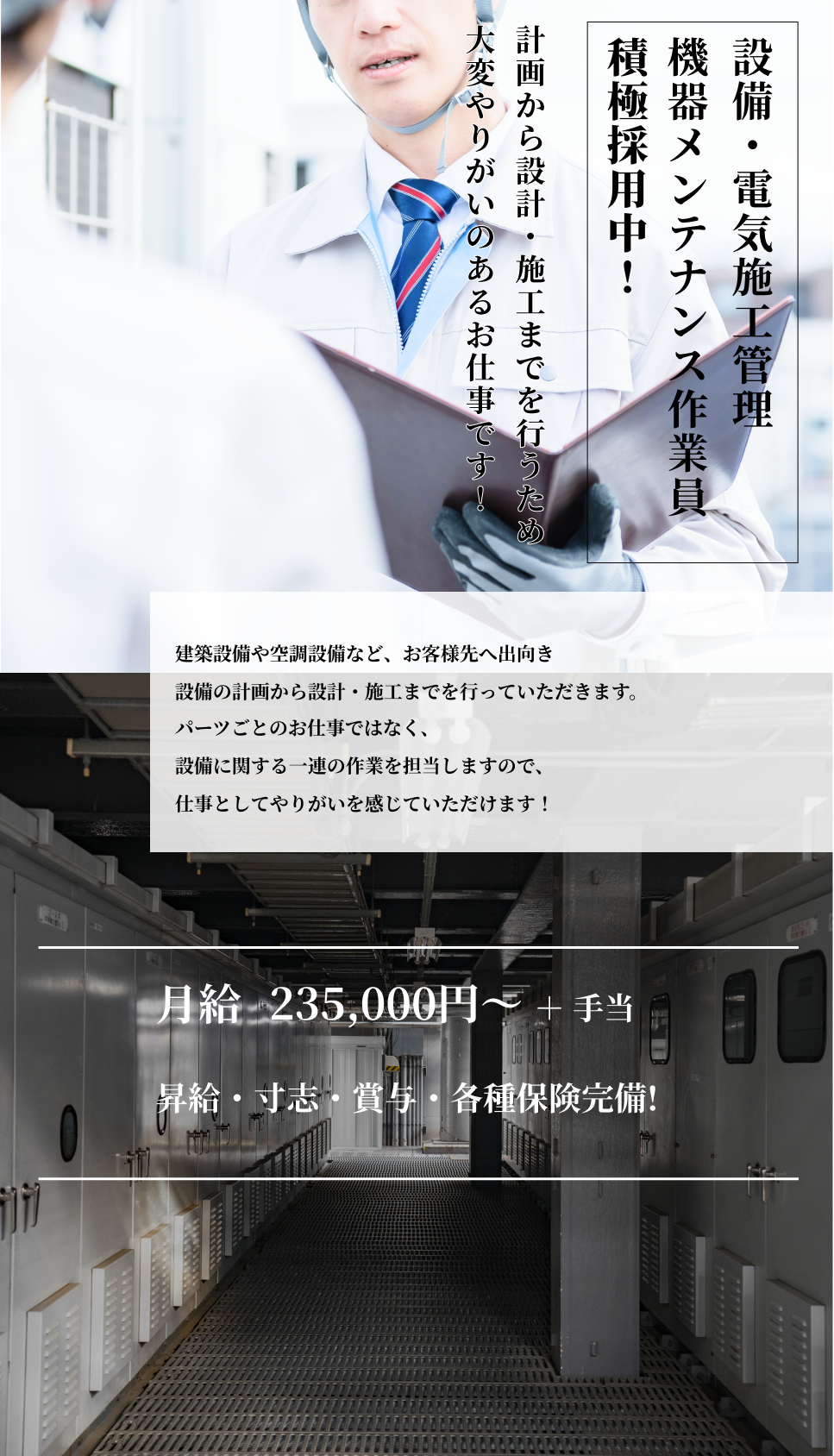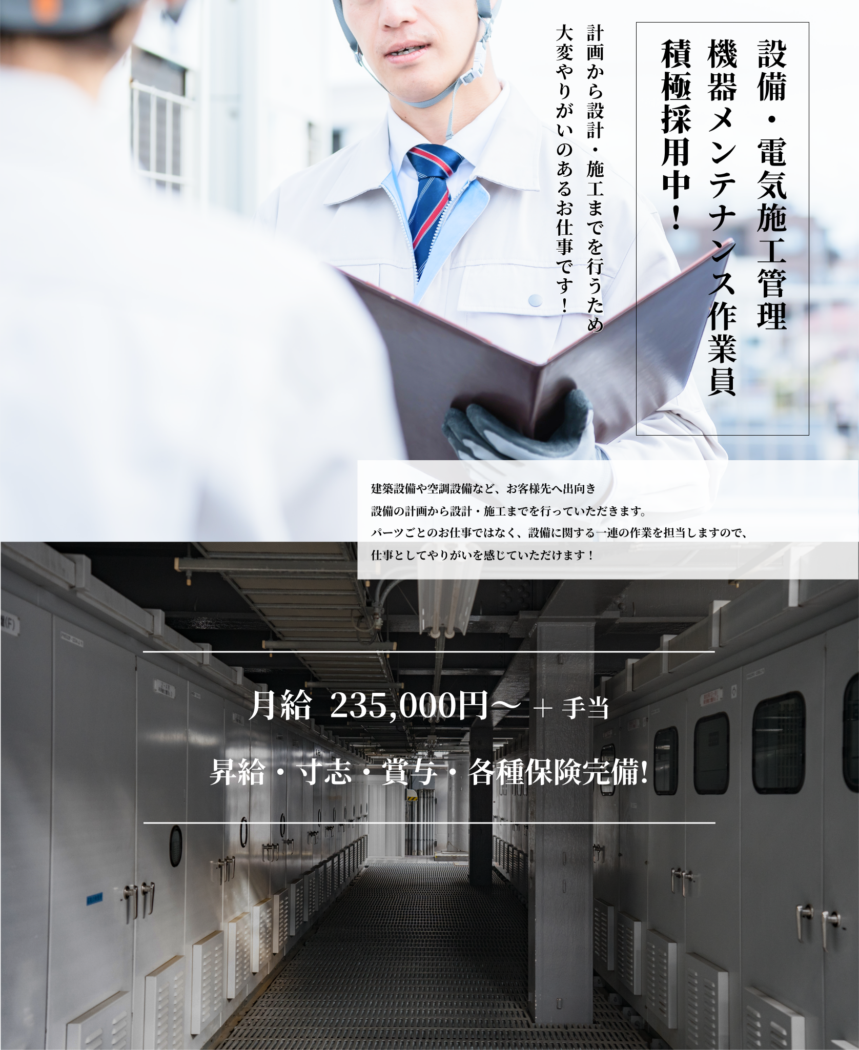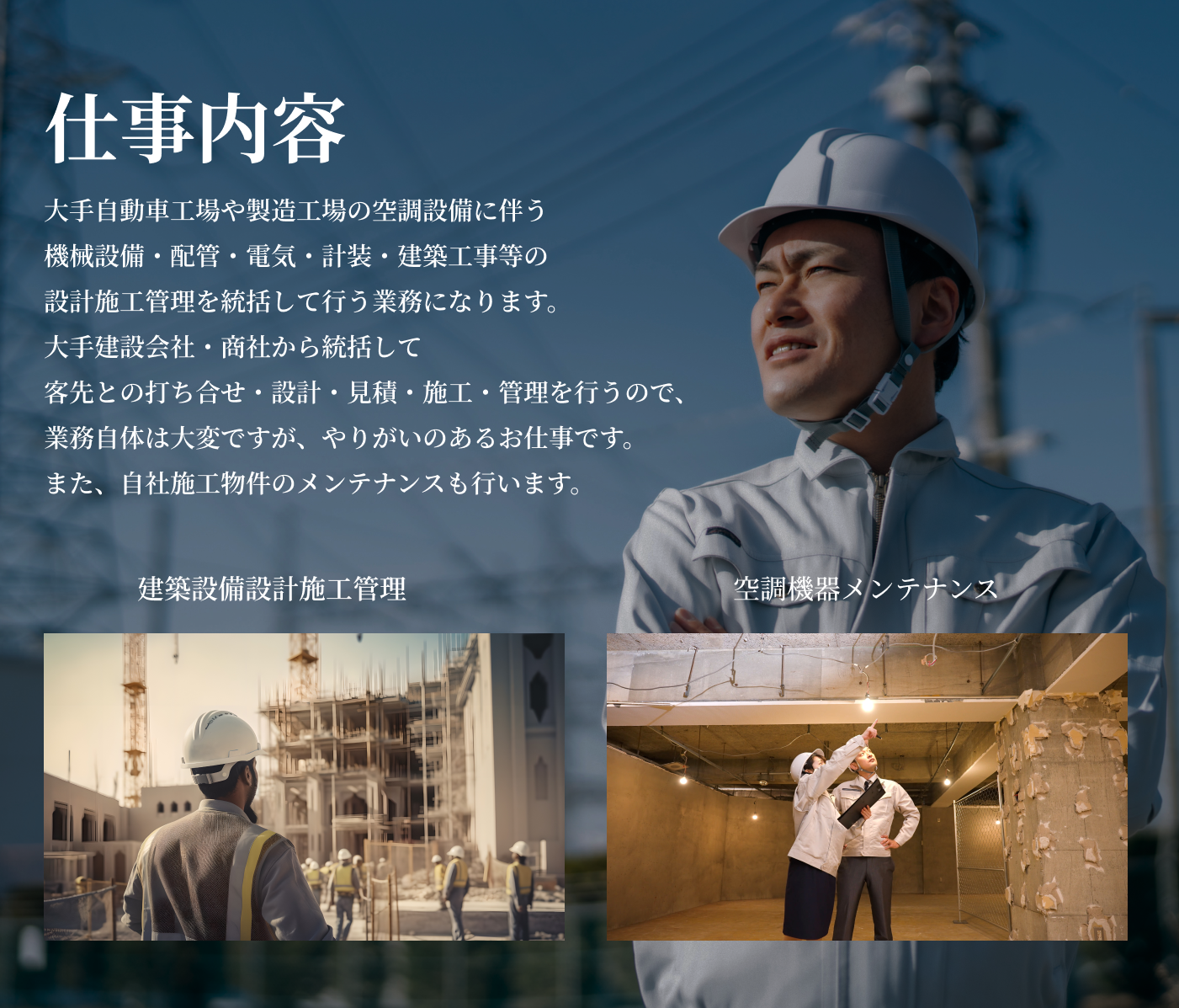 | 採用職種 | 建築設備設計施工管理・空調機器メンテナンス作業員 |